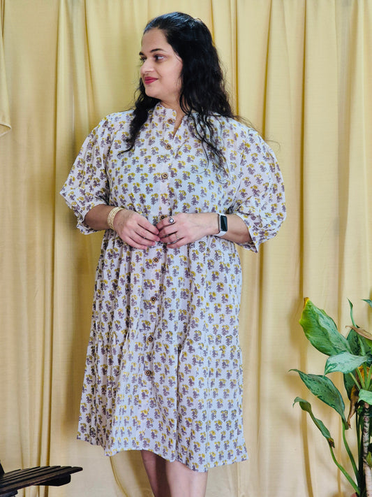 "Madhulika" Floral Blockprint Dress