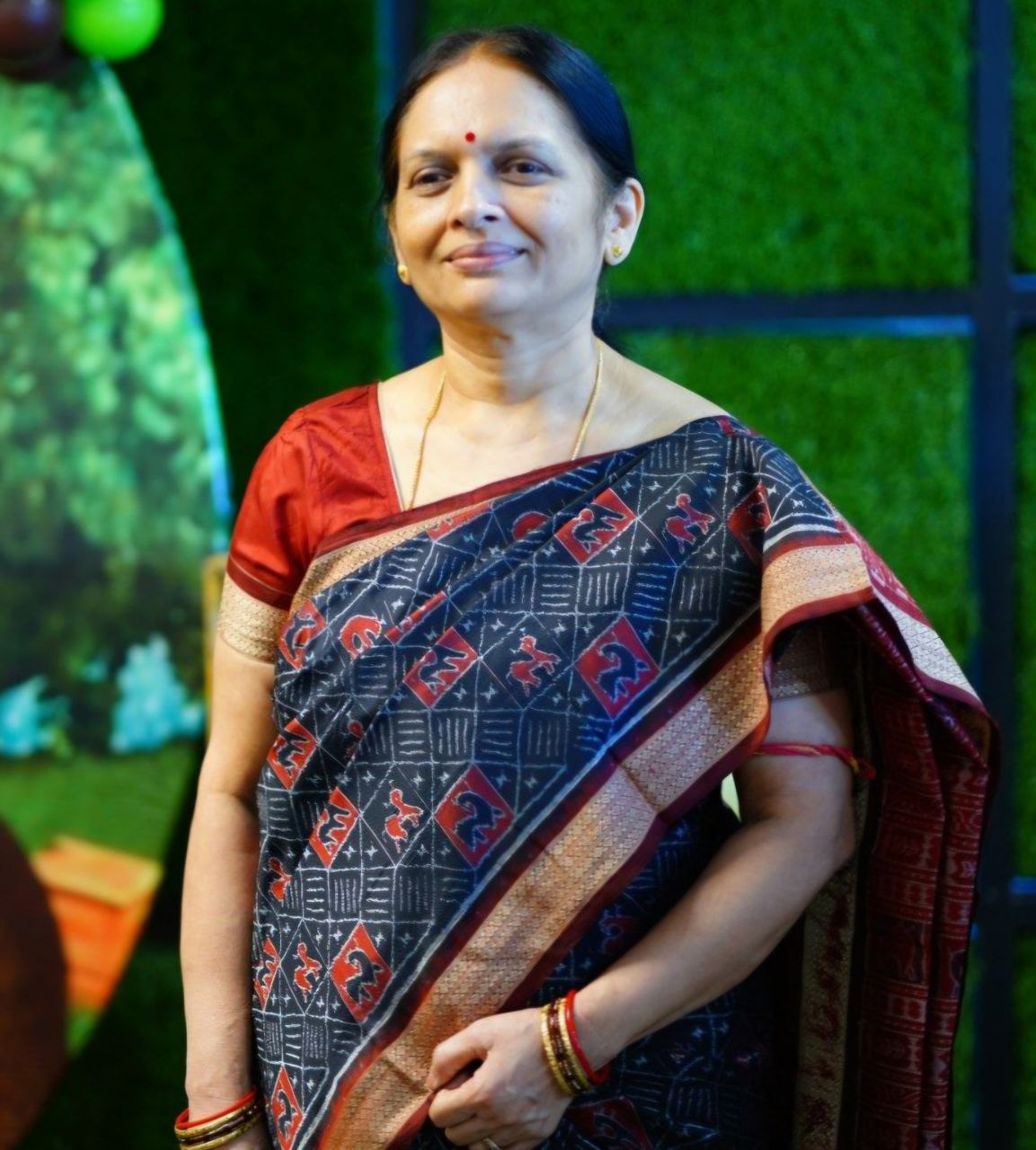 The granddaughter of Padma Shri Kruthartha Acharya, she grew up watching weavers work, understanding the language of the loom before she understood its significance. Decades of living with handloom — in her saris, her home, her gifts, her daily choices — gave her an education no institution offers: how a Sambalpuri fabric should feel against the skin, what a motif means, when a dye is right, and how to tell the pure from the imitation.