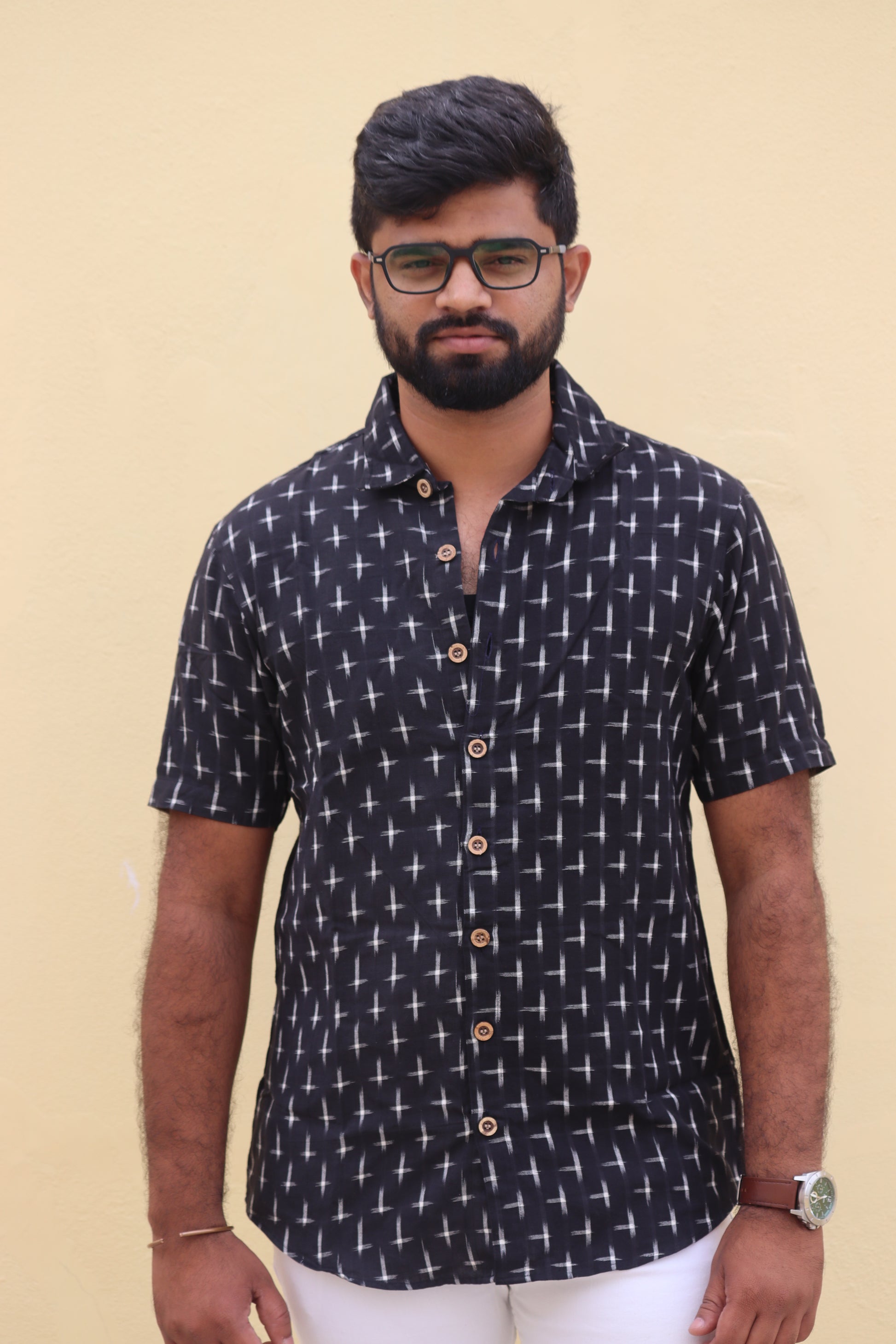 Step into sophistication and timeless elegance with our Black Pochampally Unisex Shirt: A Testament to Heritage and Style. Crafted from the finest Pochampally Handloom fabric, this shirt is a symbol of artisanal excellence and cultural richness. Adorned with intricate white cross Ikat patterns, each detail is a masterpiece of craftsmanship, weaving together tradition and modernity. The classic black hue exudes understated elegance and versatility, ensuring effortless style for any occasion. Ethically sourced and sustainably made, this shirt reflects our unwavering commitment to eco-friendly fashion and responsible sourcing. To preserve its vibrancy, indulge in a soft hand wash and store it in a clean, dry place away from direct sunlight. Designed with a flattering silhouette that caters to all body types, it offers comfort and style in equal measure. Elevate your wardrobe with this statement piece, where the rich tapestry of heritage meets the contemporary allure of fashion, creating a harmonious blend of past and present.