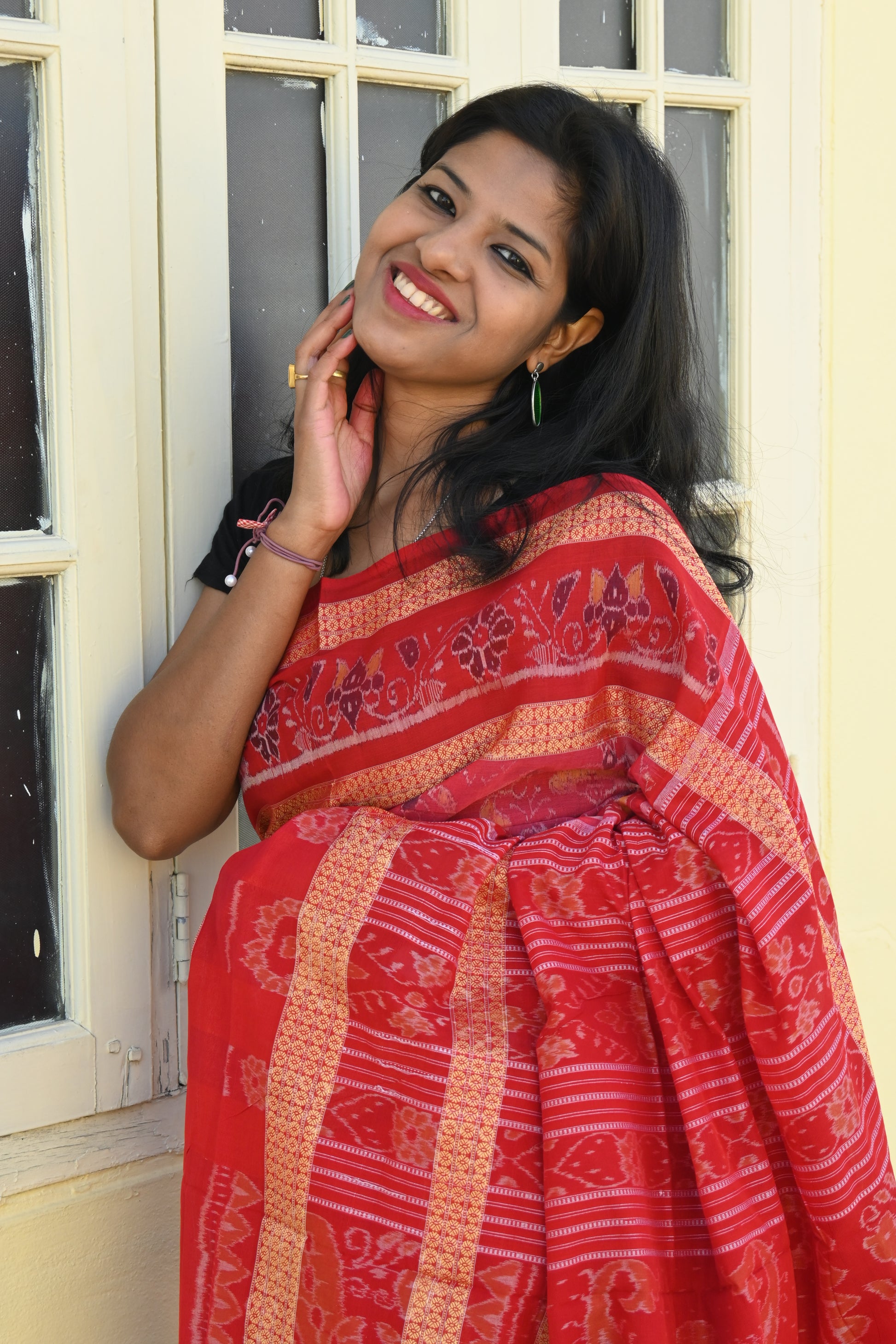 Every weave reflects the patience, precision, and heritage of Sambalpuri craftsmanship—a saree for the woman who loves colour, culture, and understated elegance.