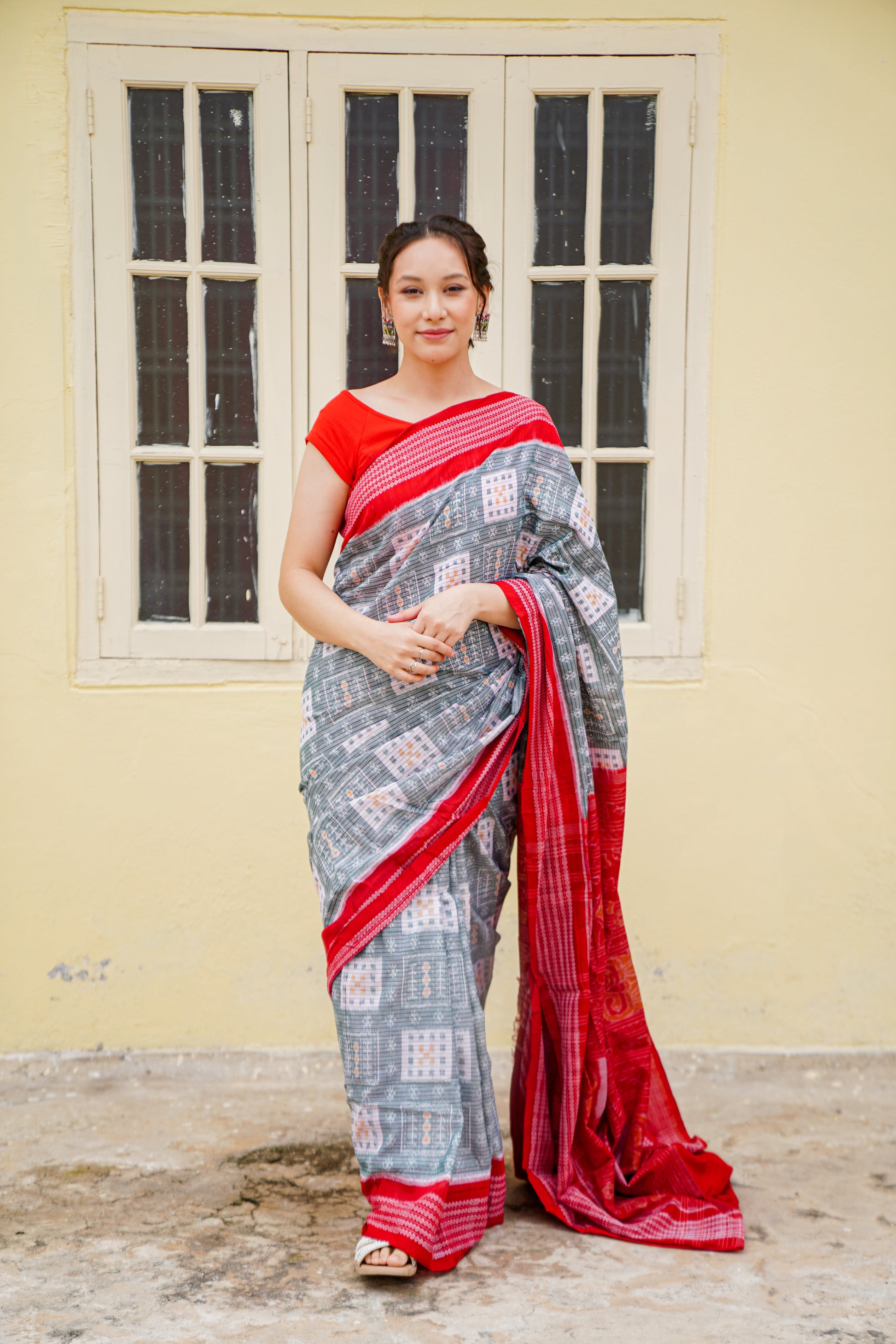 - Design: Traditional Sambalpuri ikat with subtle motifs across the body